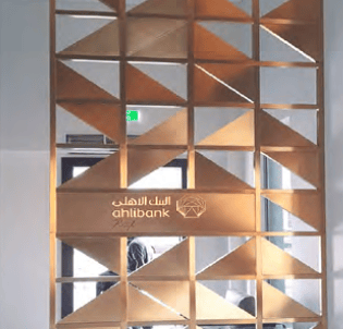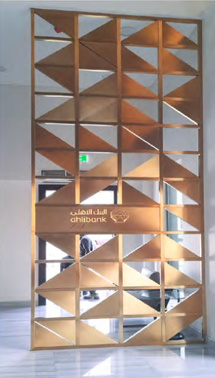 External & Internal Signage, Space Branding, Free standing SS PVD coated Gold metal fabricated steel frame
